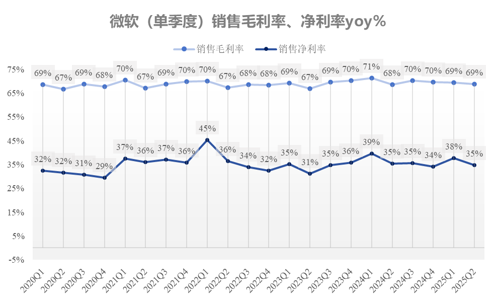 微软智能云营收为255.44亿美元,经调整后同比增19%,略低于买方预期的258~260亿美元,Azure和其他云业务同比增31%,AI的贡献为13个百分点,高于第三季度的12个百分点,不过该项目连续三个季度增速放缓,此前两个季度增速为33%和34%;