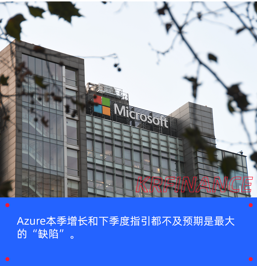 但现实中不仅当季增长跑输买方预期,公司对Azure下季度增速的指引区间依旧是31%~32%,换言之,管理层并不预期下季度Azure的增长会提速。当季和对下季度指引双双miss,让“Azure在下半财年会加速增长” 的美好愿景基本幻灭,,会促使市场下调对FY25全年乃至更长期内Azure的增长预期。