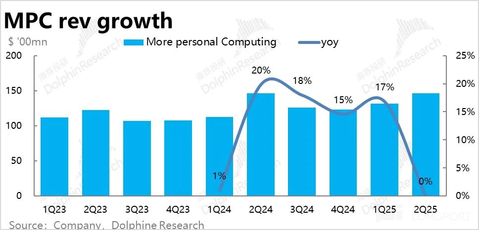 在度过了上个财年2Q并表动视暴雪的影响期后,更多个人计算板块的本季度营收同比增速回落到了0%--并表前的低增长区间上。不过相比更低的市场预期增速(-1.4%),零增长的实际表现并非预期外的坏消息。