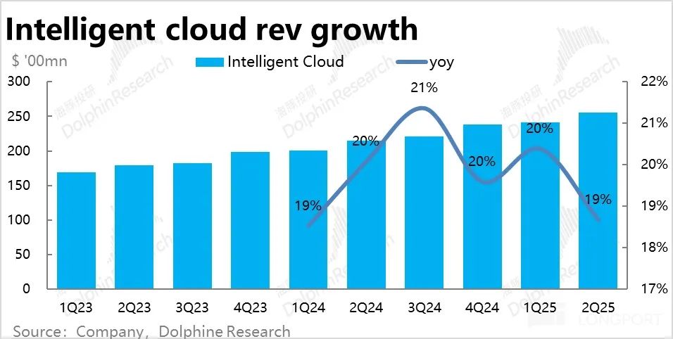 整体上由于Azure业务增长的放缓且稍不及市场预期,整个智慧云板块本季收入$255亿,稍低于预期的$259亿。同比增长19%,环比放缓1pct。