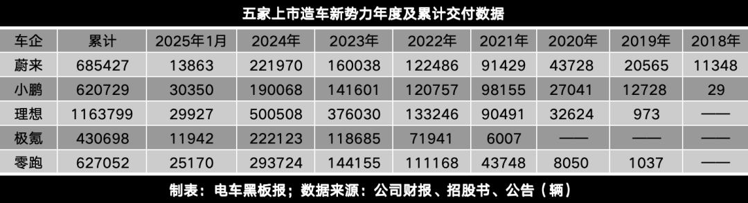 不过,从累计交付规模来看,小鹏等车企尚无法撼动理想的领先地位。
