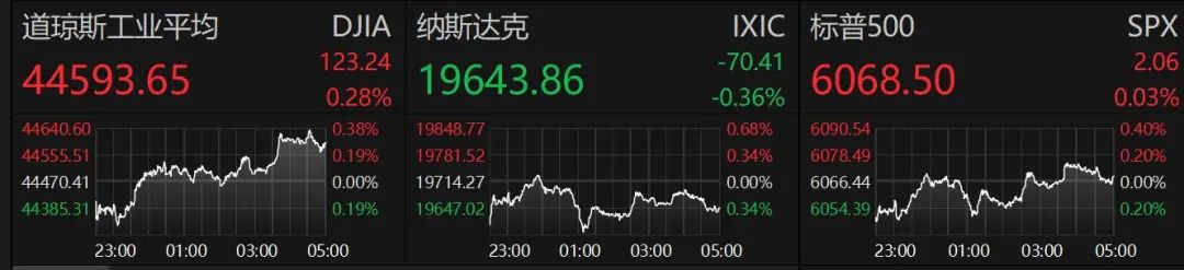 美股三大指数收盘涨跌不一,道指涨0.28%,标普500指数涨0.03%,纳指跌0.36%。美联储主席鲍威尔重申无需急于调整利率,暗示官员们在降息问题上将保持耐心。特朗普的关税威胁受到全球关注。