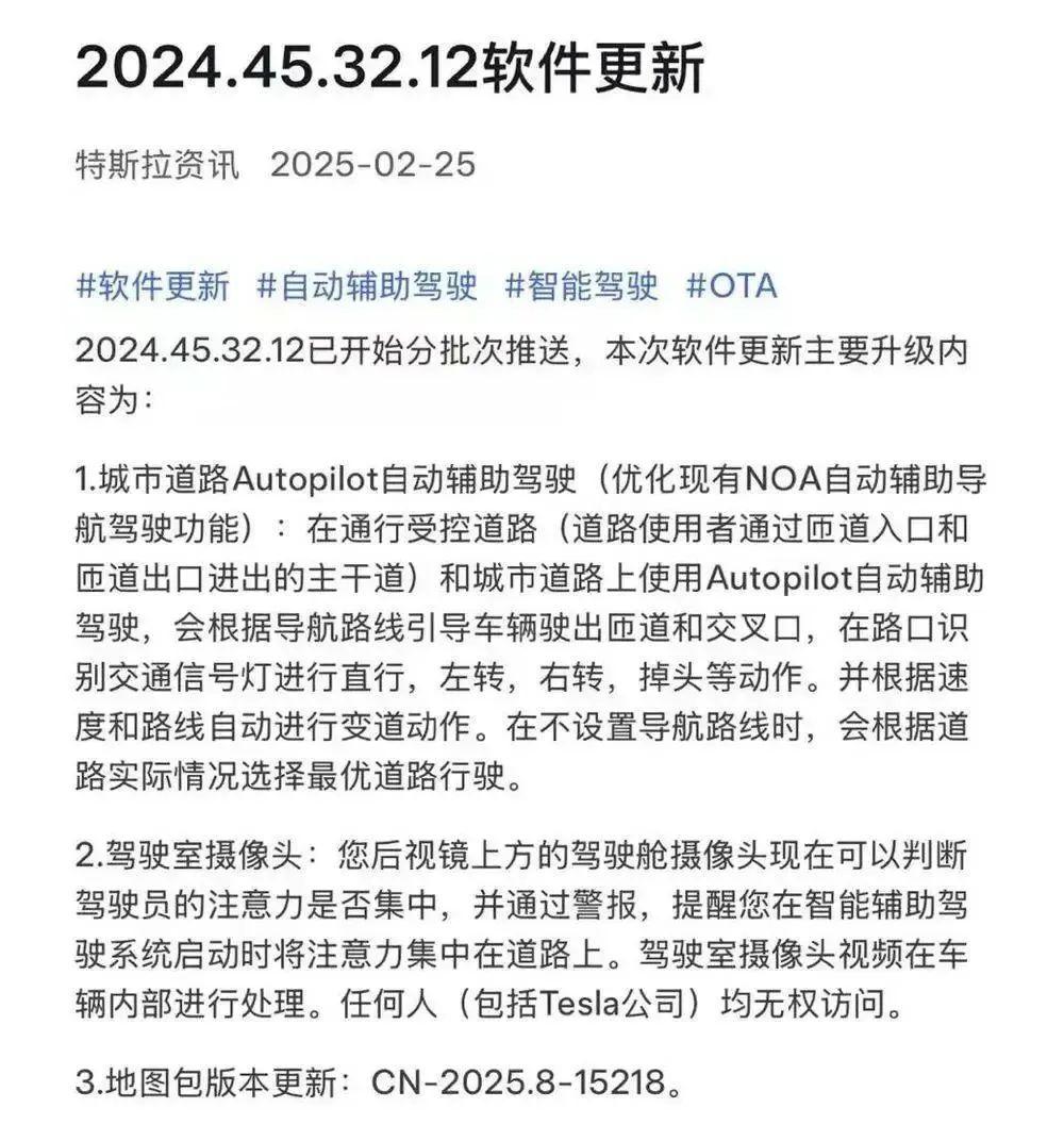 值得一提的是,被寄予厚望的FSD或即将进入中国市场。2月25日,特斯拉宣布,面向定购FSD智能辅助驾驶功能的用户,推出城市道路Autopilot自动辅助驾驶功能,已开始分批次推送给中国用户。