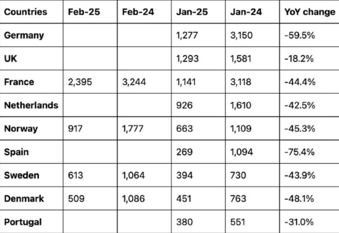 这背后,是特斯拉在全球市场遭遇滑铁卢,尤其是欧洲市场。