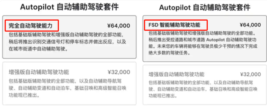 事实上,本次特斯拉推送的软件更新并非严格意义上的FSD,更像是某种城市NOA(领航辅助驾驶)。值得注意的是,在特斯拉中国官网,原本FSD介绍宣传的“完全自动驾驶能力”已被悄然改成了“智能辅助驾驶功能”,并解释称,未来车辆将能够在驾驶员极少干预的情况下完成绝大多数驾驶任务,官网售价为6.4万元。