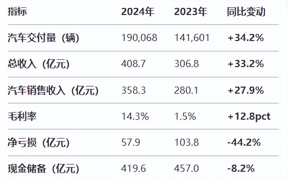 除了收入增长,小鹏汽车也逐渐看见盈利曙光。公司2024年毛利率升至14.3%,全年净亏损大幅收窄。这一变动与新车结构性降本和高毛利的服务收入增长有关。