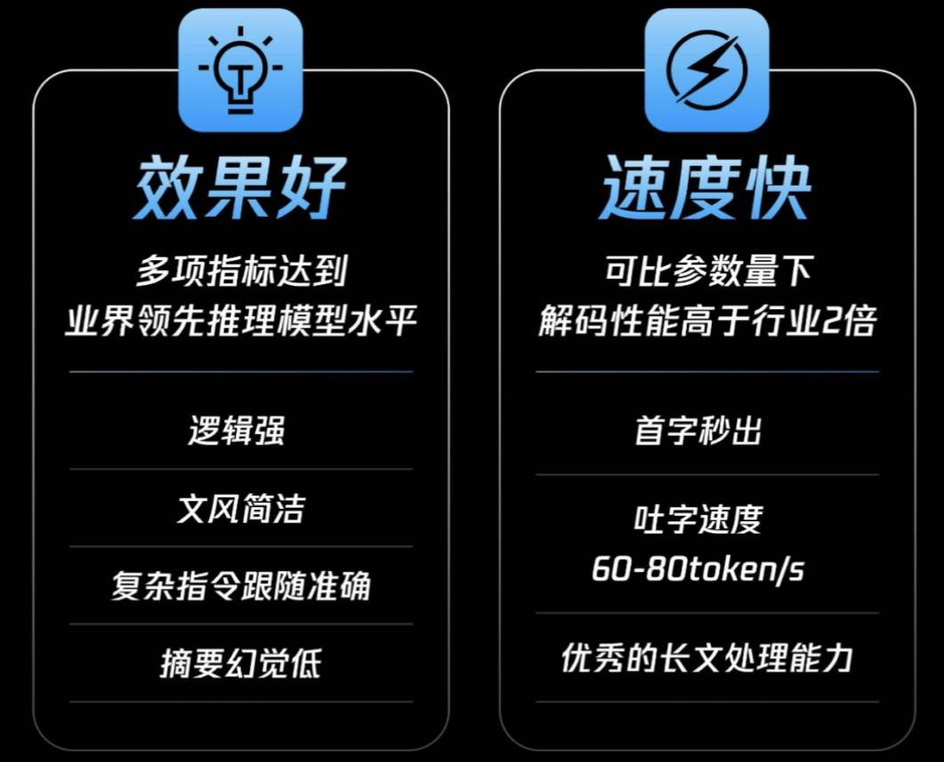 这种架构可以有效降低传统大模型Transformer结构的计算复杂度,显著提升了推理速度。在实际运行中,其吐字速度最快能达到80 tokens/s,快于DeepSeek-R1。