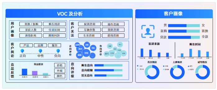 相比以往仅通过购买意向区分的用户画像,车企可以通过VOC(通过调研、访谈、数据分析等方式收集到的用户真实需求、痛点、期望和反馈)的深度分析,发现客户对产品和服务的满意度、期望以及存在的问题。结合VOC的多维数据,车企可实现服务的个性化。