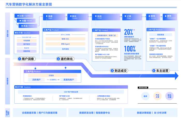 随着车企营销从短期销售向价值深耕的范式转变,线索转化的链路需要升级。在成交转化率可能只有3%的行业背景下,以前依赖增量线索的车企,需要思考剩余97%的线索应该如何实现转化。AI和数字化技术可以从线索、销售和门店端三方面帮助车企提升转化效率。