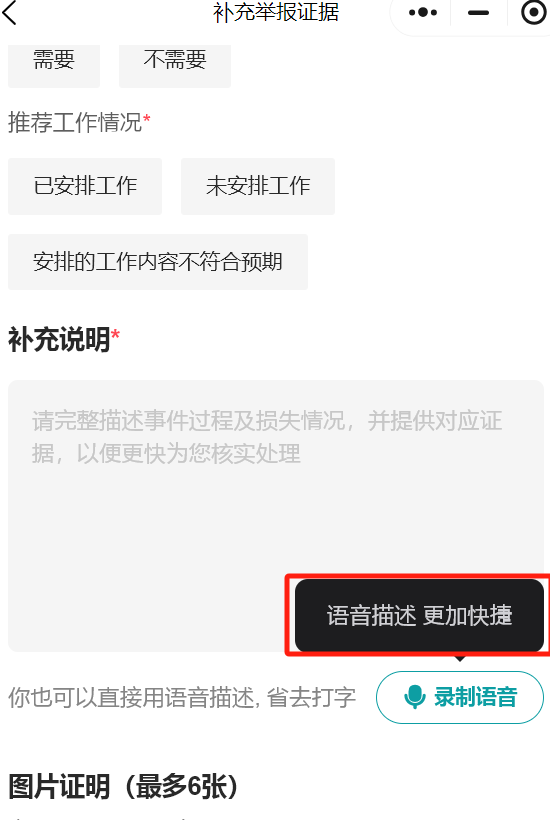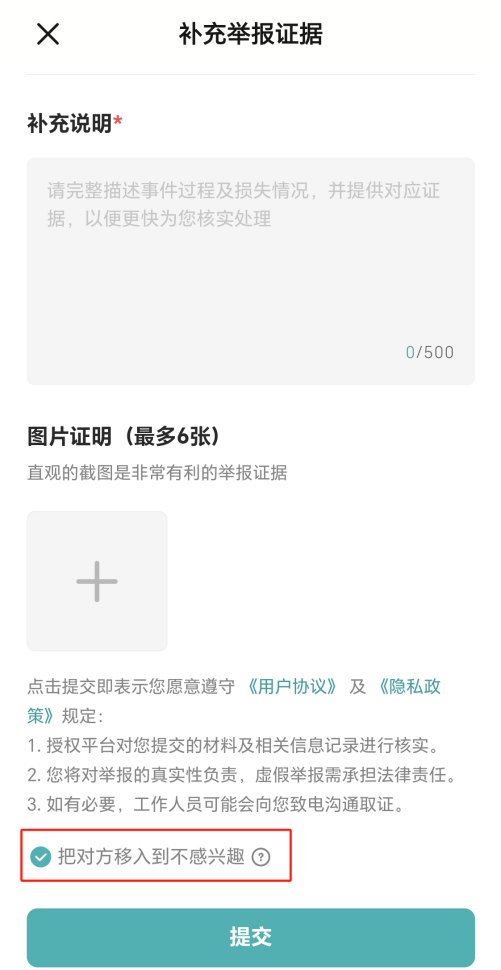 产品功能优化,举报投诉支持语音描述、支持默认勾选对被举报者“不感兴趣”
