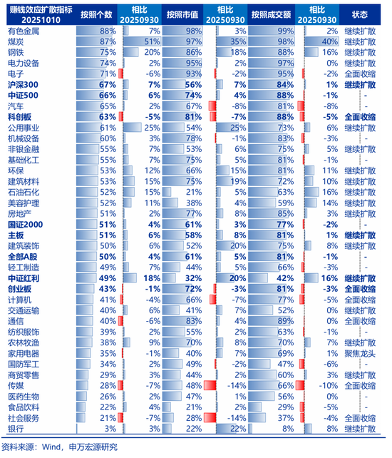 调整兑现后,我们提示,科技没有持续调整、深幅调整的基础。总体市场要实现突破,最终还是要由科技引领。我们依然提示三个积极因素:1. 科技产业趋势未结束是明确的,海外AI资本开支beta依然向上,并未出现增速拐点的迹象。而国内AI也在不断进步。我们继续提示,26年春季前,科技产业催化多于顺周期是稳定的格局。对于顺周期而言,需求侧,25年“经济增长改善仍需等待 + 政策重点偏向于调结构”是稳定的预期。供给侧,中游制造供给出清的关键窗口是26年中。2. 科技性价比还不是绝对顶部特征:长期性价确实没有之前高,但短期性价比其实已改善了一段时间。9月初以来,科技成长的赚钱效应就在收缩,对应保持强势的股票数量明显减少。短期科技龙头补跌,更偏向于是短期性价比调整的中后段,而不是调整的起点。基于中美摩擦扰动的调整,可能使得科技的短期性价比修复到高位。3. 科技龙头调整,但上涨公司占比并不低(本周五仍有53%),市场维持了基本热度。