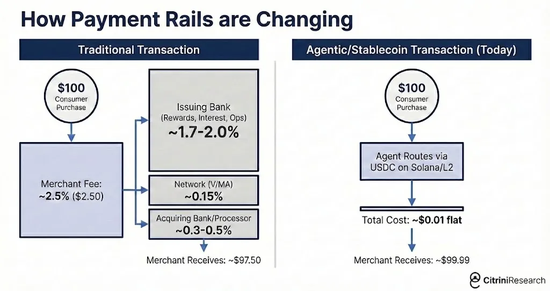 代理商们寻找比信用卡更快更便宜的支付方式。大多数人选择通过Solana或以太坊L2平台使用稳定币进行支付,因为这种方式的结算几乎即时完成,交易成本仅为一分钱的几分之一。
