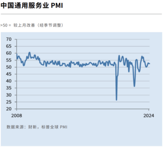 与此同时,中国经济也出现了积极信号。3月5日,标普全球公布的数据显示,中国2月财新服务业PMI为52.5,低于上月0.2个百分点,中国服务业连续14个月保持扩张。