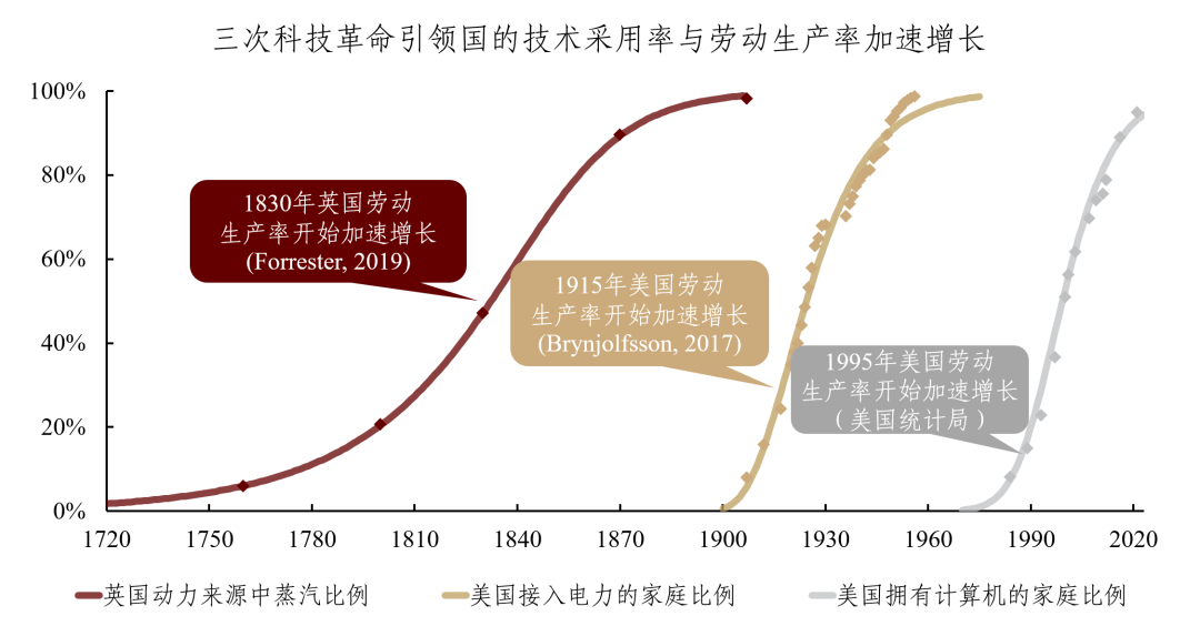 资料来源:Forrester[6],Brynjolfsson[7],美国统计局,Kanefsky[8],Nuvolari[9],中金研究院