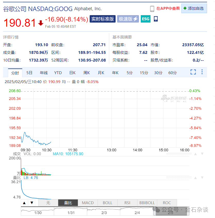 浓眉大眼的美国科技巨头谷歌2月5日突然闪崩,股价暴跌8%,瞬间蒸发2000亿美元。