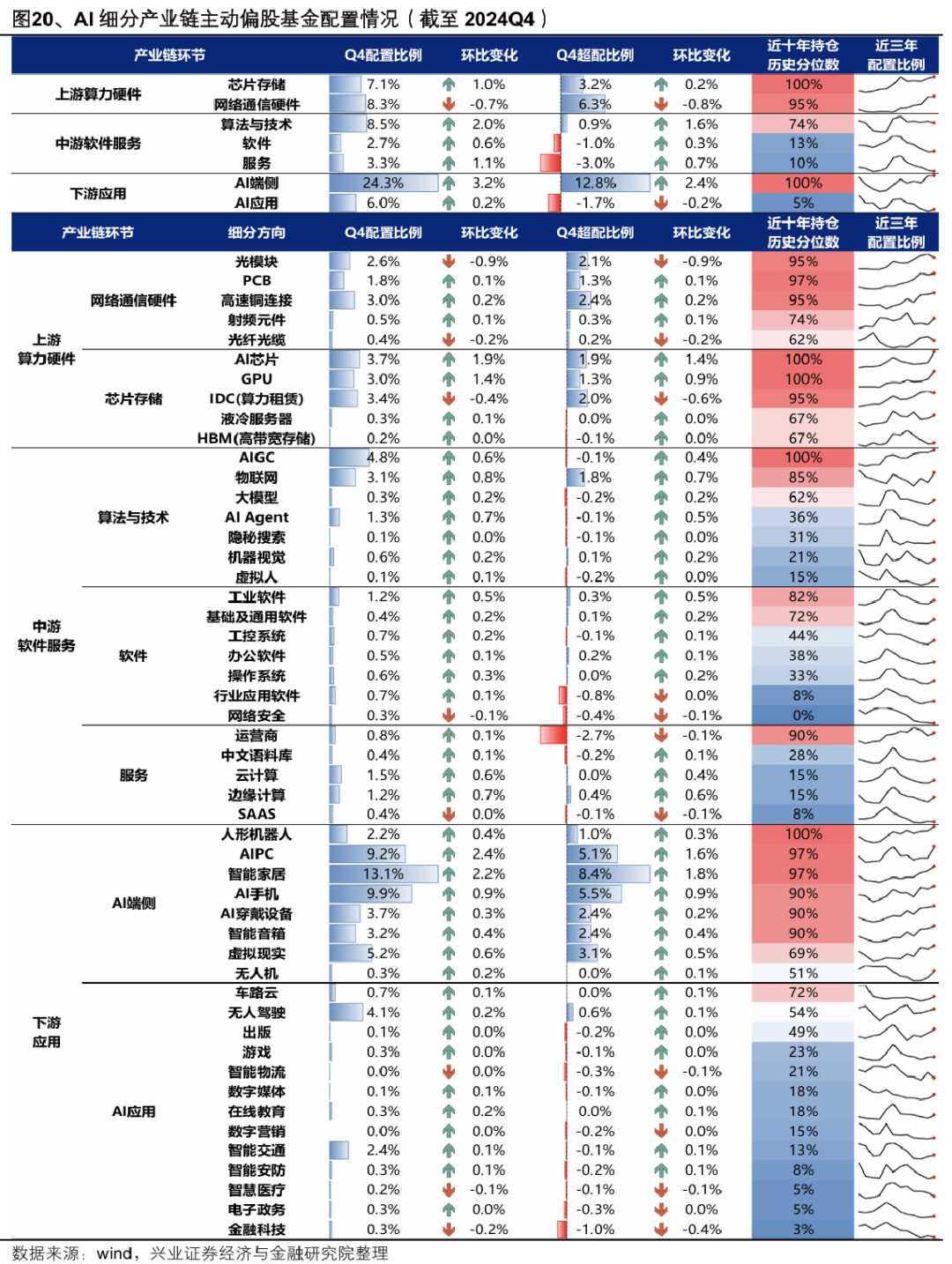 四、机构资金在多数AI中下游产业链环节仍处于低配
