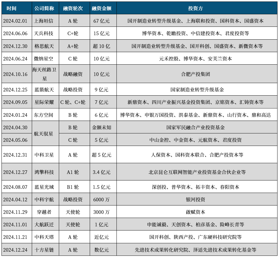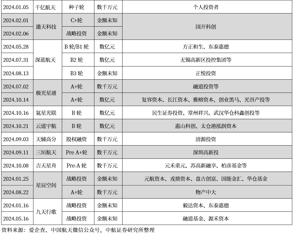 表11 2024年我国商业航天一级市场融资情况(不完全统计)