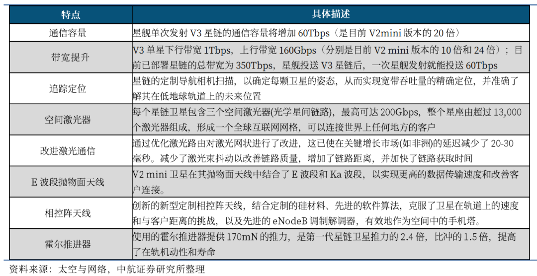 表8 新一代星链(StarlinkV3)特点
