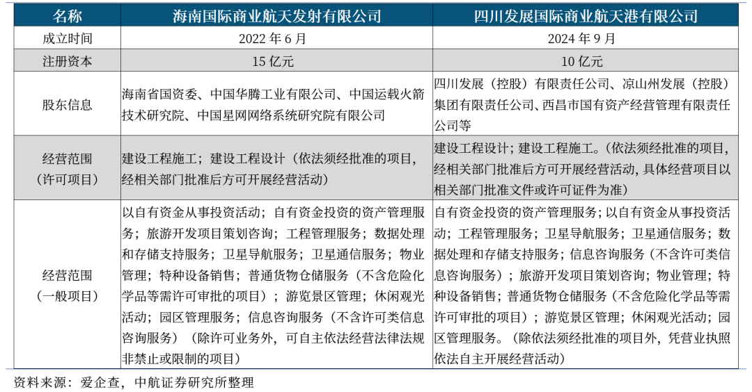表6 海南国际商业航天发射有限公司和四川发展国际商业航天港有限公司的相关信息对比