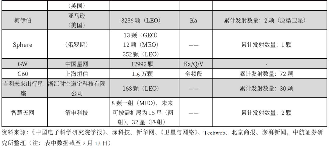 (二)多个低轨卫星互联网星座建设再提速