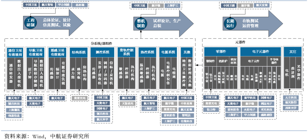 图9 卫星制造产业链及各部分代表上市公司