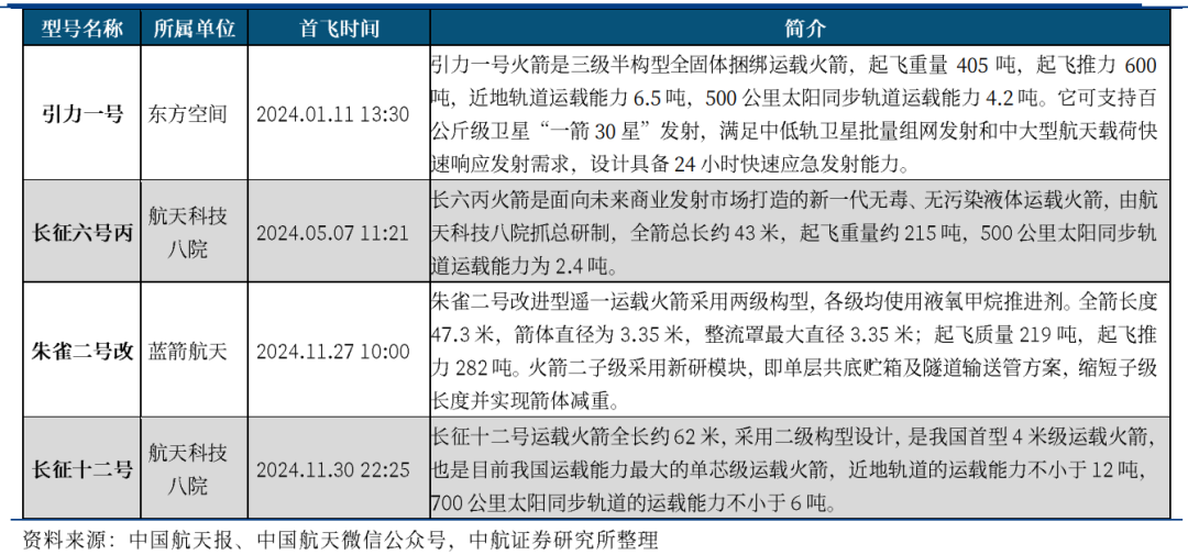 表2 2024年我国首飞的新型号运载火箭情况