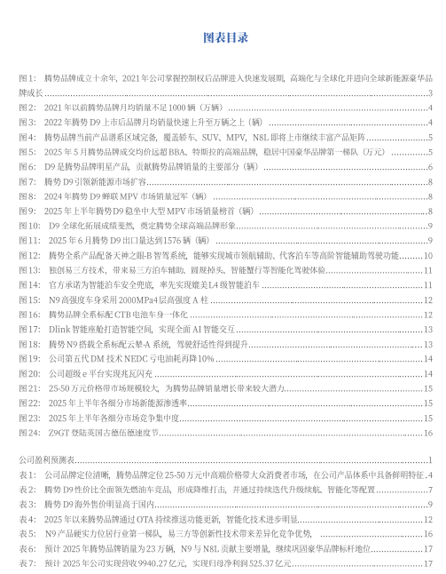 腾势定位中高端品牌,D9国内外销量表现亮眼:腾势汽车创立于2010年,由公司与戴姆勒各出资50%,2012年发布中国首个专注于新能源汽车的品牌DENZA腾势,2021年公司增持腾势股份至90%,掌握绝对控制权,引领品牌进入快速发展期,2022年通过高端MPV D9快速打响市场声誉,2023-2024年陆续上市N7、N8、Z9GT,成为全球首个实现MPV、SUV、轿车全品类覆盖的新能源汽车豪华品牌。品牌定位25-50万元中高端价格带的大众消费市场,在公司产品体系内特征鲜明,2025年5月成交均价约为38.0万,仅次于鸿蒙智行,远超BBA、沃尔沃等高端品牌,稳居豪华品牌第一梯队。明星产品D9是当前销量的主要部分,通过全面领先燃油车竞品的产品力引领我国新能源MPV市场扩容,2023、2024连续两年登顶中国全品类MPV市场销量榜首。2024年D9开启全球化,相继在新加坡、泰国、印尼、马来西亚等地上市,并进入欧洲市场,成绩斐然,2025年H1打破日系车垄断,成为泰国、印度尼西亚、马来西亚市场豪华MPV销量冠军,奠定腾势全球高端品牌形象。