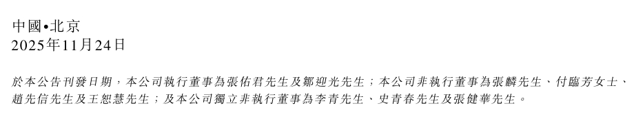 非执行董事张麟先生,因工作调动,已向董事会提呈辞任非执行董事及董事会发展战略与ESG委员会委员的职务。