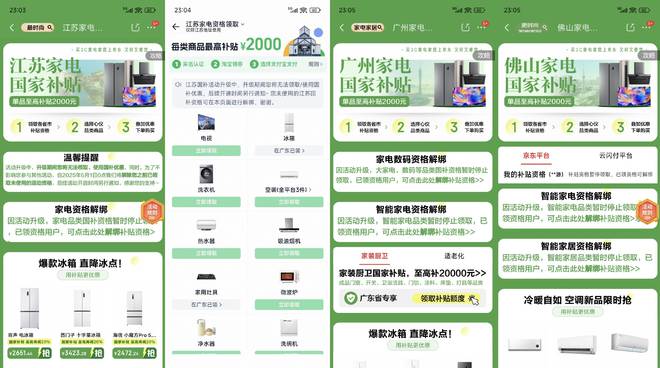 目前,淘宝、京东等电商平台的江苏国补专区已出现无法领取和使用。