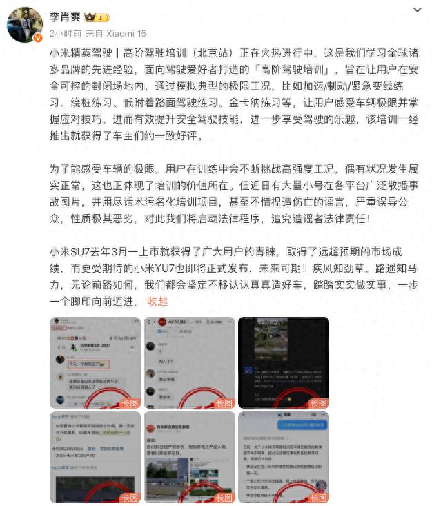 【环球网科技综合报道】6月10日消息,针对网络流传的“小米汽车高阶驾驶培训出现致命车祸”消息,小米汽车副总裁李肖爽通过微博公开辟谣。他表示,“近日有大量小号在各平台广泛散播事故图片,并用尽话术污名化培训项目,甚至不惜捏造伤亡的谣言,严重误导公众,性质极其恶劣,对此我们将启动法律程序,追究造谣者法律责任!”