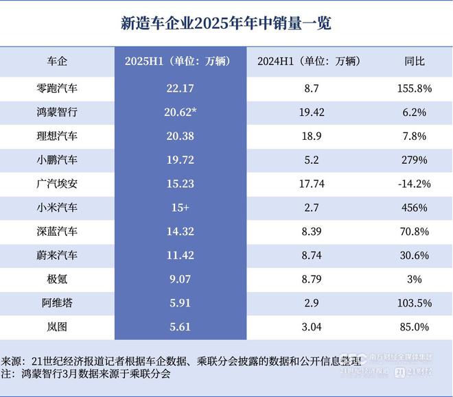2025年上半年收官,新造车企业大多交出了一份同比增长的成绩单。