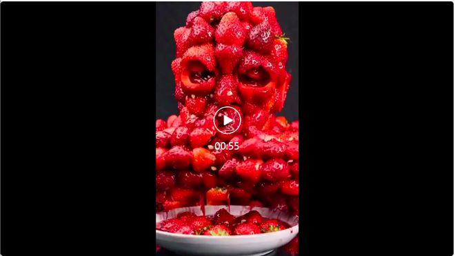 这段名为「You Are What You Eat」的视频曾在 Reddit 上疯传,展示了由食物组成的人正吃着这些食物,比如一个寿司人正在狼吞虎咽地吃寿司,或者一个酸奶人端着草莓酸奶杯猛吞…… 要是再配上音,令人毛骨悚然。