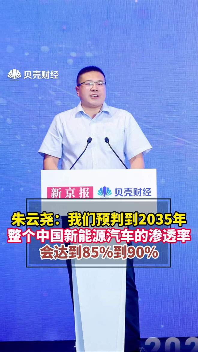 IT之家 7 月 10 日消息,在今日的 2025 贝壳财经年会上,中国汽车工程研究院股份有限公司、政研咨询中心副总工程师朱云尧表示:“中国未来走向一定是以绿色电力为主要消耗能源的主体,整体来说,我们预判在 2025 年,整个中国新能源汽车的渗透率约达到 50%,到 2030 年会达到 70% 到 75% 的渗透率,到 2035 年就会达到 85% 到 90%(的渗透率)。”