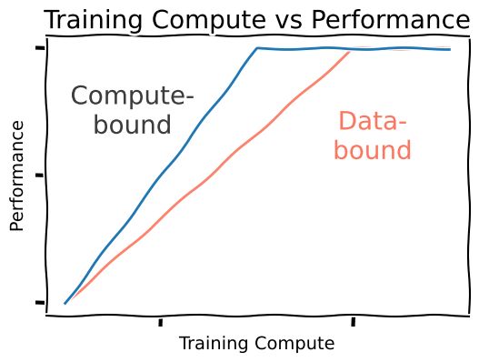 数据密集(Data-bound):实际上,研究并非无用。自 transformer 之后,研究社区已开发出更优的方法,比如 SSMs(Albert Gu 等人,2021)和 Mamba(Albert Gu 等人,2023),以及更多。但我们并不认为它们是“必然更好”的成果:在给定的训练计算下,我们仍然应该训练一个表现更好的 transformer。