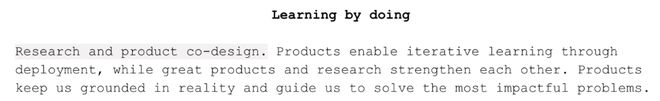 乍一看,许多研究人员可能会觉得奇怪,为了取得研究进展,我们需要转向关注产品。但我认为这非常自然:假设我们关心的是 AGI 真可以为人类做一些有益的事情,而不仅仅是在隔绝环境中表现出智能(如 AlphaZero 那样),那么思考 AGI 所采用的形式(产品)是合理的——我认为研究(预训练)与产品(互联网)之间的协同设计非常美妙。