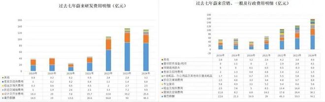 仔细拆解878亿元亏损的构成会发现,销售和管理费用达到608亿元,比研发的528亿元多出了80亿元。也就是说,销售和管理费用才是更大的出血点。2024年情况更明显:销售行政开支157亿元,高出同年研发支出27亿元。
