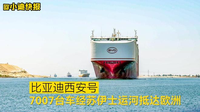 苏伊士运河管理局宣布,西安号本周首次通过苏伊士运河,顺利抵达欧洲,历时近一个月。这是比亚迪旗下继 6 月 27 日“合肥号”之后第二艘通过苏伊士运河的运输船。