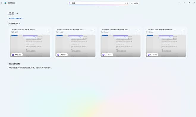 在回顾(预览版)中还有搜索功能,当你的记录比较多,而你只想调取某个主题相关的内容时候,就可以用搜索功能。比如小编想找到之前使用记录中和“互动”相关的内容,直接搜“互动”,它就能找到对应的记录,无论是文档还是文字或是图片中的信息,都能准确定位。