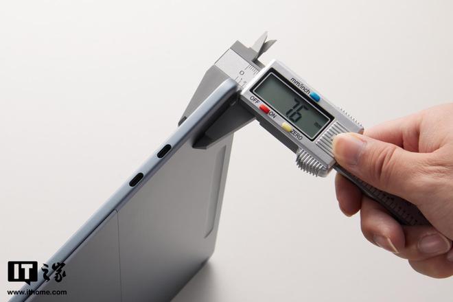 取出平板本体,上手的第一感觉是比较轻薄,实测它裸机的厚度为 7.6mm,重量则为 686.8g,很适合日常出行携带。