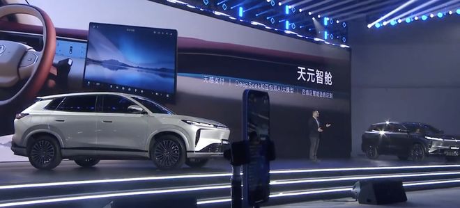这款汽车还配备了“天元智舱”系统,搭载 540° 全景影像、流媒体后视镜,中控上配有无线充电座,支持 L2 级辅助驾驶,主驾座椅有通风 / 加热 / 按摩功能;车机内置 Deepseek 和豆包 AI 大模型,支持支付宝无感支付,其后排配备 15.6 英寸 2.5K 吸顶屏和可收纳桌板,支持观影、煲剧等。