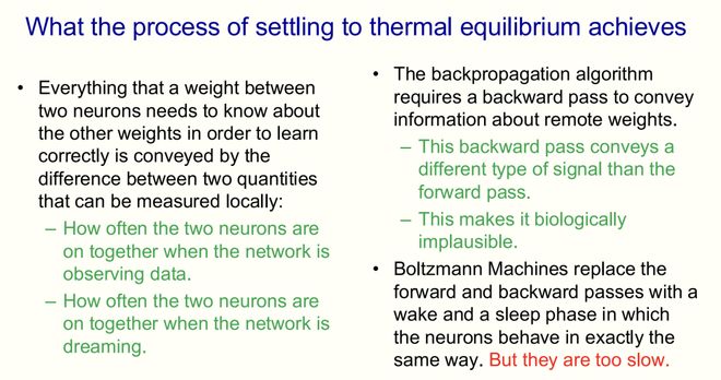 「反向传播」算法依赖的是,前向通路传递神经元活动,反向通路传递敏感度;「玻尔兹曼机」仅通过对称连接性和相关性差异完成学习。