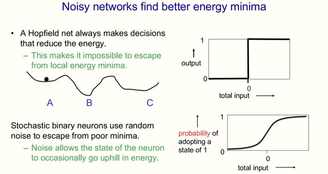 对于「搜索问题」,最基本的解决方法——引入带有噪声的神经元,即「随机二进制神经元」。