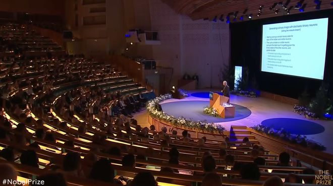 2024年12月8日,诺贝尔物理学奖得主Hinton登台,发表了题为《玻尔兹曼机》的演讲。