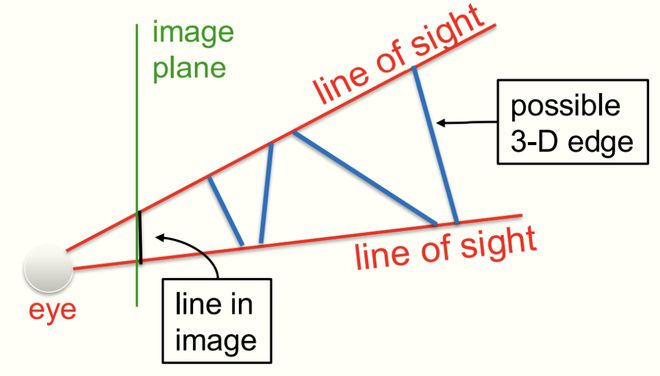 其实可能性非常多,所有不同的三维边缘,最终都会在图像中产生同样的线条。