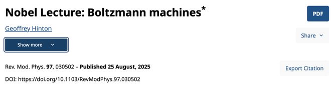 如今,Hinton这个演讲的核心内容,于8月25日正式发表在美国物理学会(APS)期刊上。