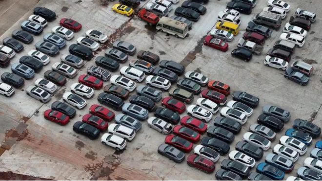 等待报废的退役新能源汽车