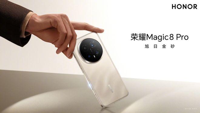 与此同时,荣耀手机官方还公布了荣耀 Magic8 全系列外观设计的海报,可以看到荣耀 Magic8 系列采用直角边框的设计,后置圆形摄像模组,标准版提供旭日金、天青釉、雪域白、绒黑色四款时尚配色;Pro 版则拥有旭日金砂、天青色、雪域白、绒黑色四种配色。