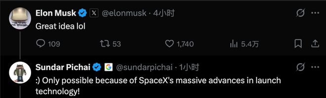 马斯克已经给劈柴哥留言了,表示想法很好,劈柴哥说这完全得益于SpaceX在发射技术方面的巨大进步,看来马斯克又要坐着数钱了