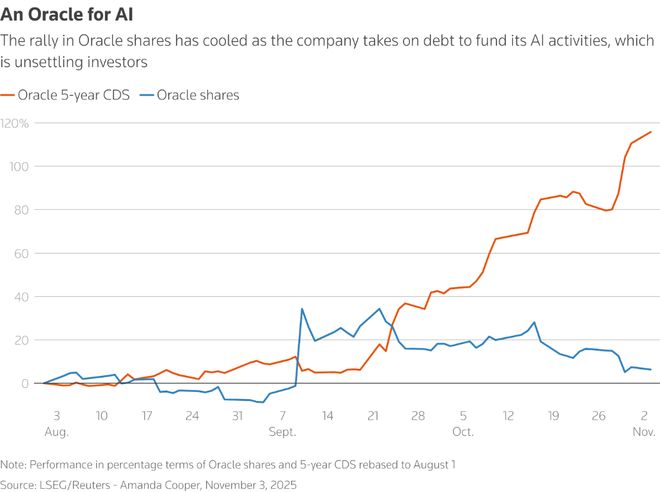 尽管支持者强调,与上世纪90年代末的互联网泡沫不同,本轮热潮由盈利能力强、资金雄厚的公司主导,且商业前景明确。但从甲骨文(Oracle)公司股价与信用违约掉期(CDS)的走势背离,到Meta借助复杂表外结构为数据中心融资,一系列信号表明,市场正密切审视这场AI盛宴背后的杠杆水平。