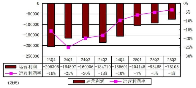 小鹏汽车2025年第三季度经营亏损为7.5亿元(1.1亿美元),2024年同期为18.5亿元,而2025年第二季度为9.3亿元。